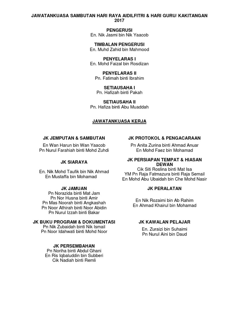 Jawatankuasa Sambutan Hari Raya Pdf